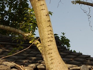 【左】1本の木にたくさん付いていた癌腫 【中】ハギ 【右】エノキの木の肌に付いていた新芽の後