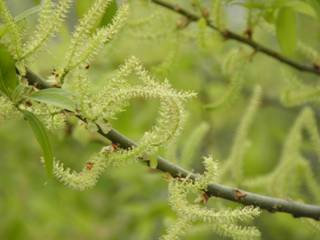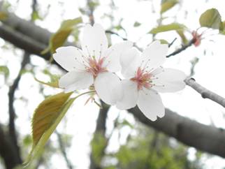 【左】ヤエザクラ 【中】ミツバツツジ 【右】ヤナギの花