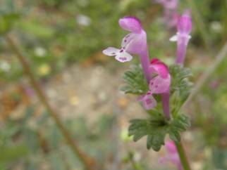 【左】ホトケノザ 【中】ハコベの仲間 【右】食事中のアブラムシ