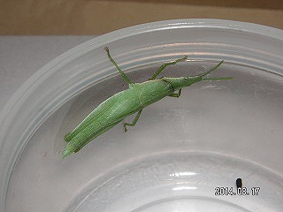 【左】コオイムシとマダラバッタ           【中】クサキリ           【右】ウチワヤンマ