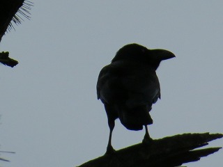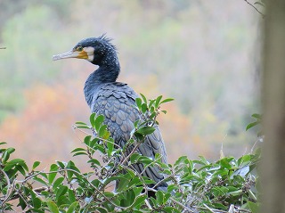 うす曇の寒い日で、時間になり あいさつと自己紹介をし、公園に移動。ハシブトカラスの声、ヒヨドリが飛び、公園下の池を見下ろす高台に出た。