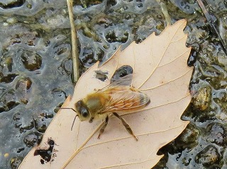 観察途中でイタチに出会い、湧き水の所ではミツバチにも出合った。  まとめの後、カボス、コマツナを土産に 少しはやめの解散(11時15分)(記・中井三)