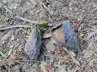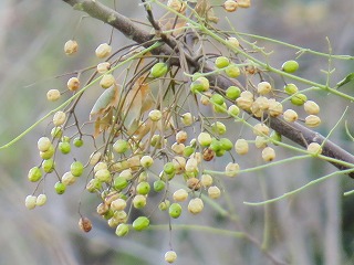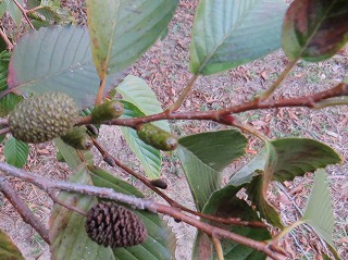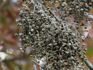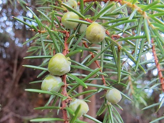 【左】ネズの実、焼酎漬けにするとジンの香りする         【中】オオバヤシャブシの球果と雄花         【右】琥珀の輝き、ヘクソカズラの果実