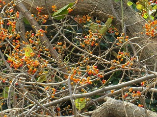【左】センダンの実。鳥が食べて種子をばら撒き、植樹         【中】ツルウメモドキ。鳥さんの食糧       【右】ハゼ。鳥さんの食糧
