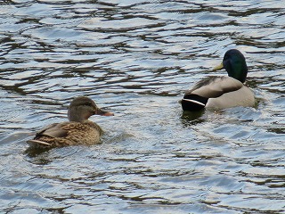 【左】カイツブリ           【中】マガモ。左、雌。右、雄。           【右】カワウ
