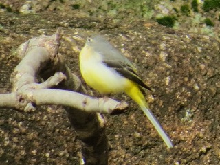 上空は抜けるような青空になり、オオタカが1羽頭上を飛んだ。駐車場近くの東屋に戻り、池の淵の石の上にキセキレイが見られた。