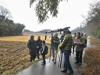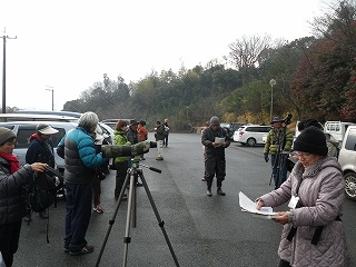 「常滑野鳥の会ミサゴ」の例会に合わせて開催し、集合時間を9時にしました。9時に集合場所へ行った時には、「ミサゴ」の会員さんはすでに駐車場で観察中でした。