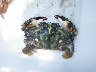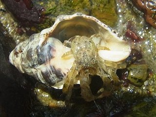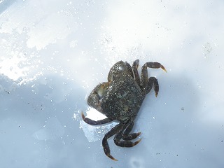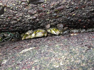 【左】ユビナガホンヤドカリの群れ 【中】イソガニ 【右】イシガニ