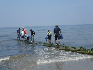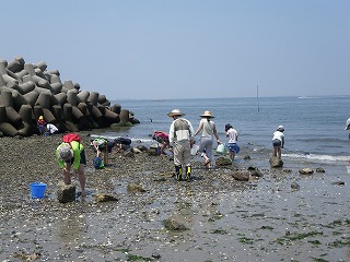 【左】消波ブロックと礫浜 【中】砂浜 【右】突堤