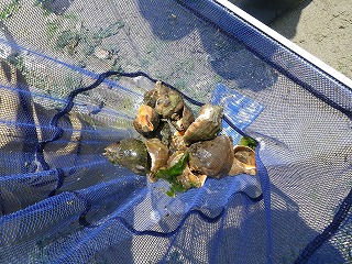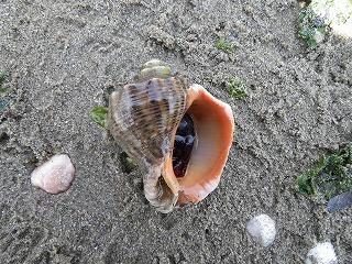 【左】アカニシ 【中】アカニシ 【右】アカニシ(卵嚢)