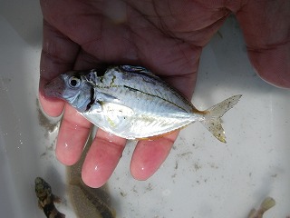 【左】タケノコメバル 【中】イソギンポ 【右】フグ(稚魚)