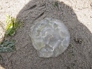 【左】アカクラゲ(死骸) 【中】ミズクラゲ(死骸) 【右】タテジマイソギンチャク