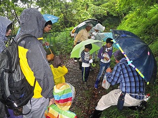 ホトトギスの声を聞きながら林の中に入りテングタケの仲間をみつけ、あっちにもこっちにも目が馴れてくると子ども達もたくさん見つけることができました。