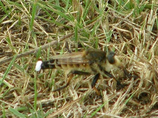 【左】オオシオカラトンボ♂? 【中】シオカラトンボ♂ 【右】シオヤアブ(甲虫の体液も吸う)