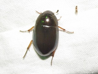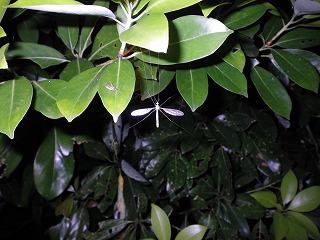 しばらく水銀灯に来る昆虫を観察後、ナイトハイクに出かけました。アオマツムシが大きな鳴き声をしてほかの虫の音をかき消す位でした。少人数のためまとまりがよく神社を一周しました。ヨモギとクズが茂った土手が綺麗に刈り取られれていたためか、毎年聞くことが出来るカンタンの鳴き声が聞けませんでした。今年はガの仲間が少なく、ミズスマシやゴミムシの仲間がたくさんおとずれていました。(記・降幡 )