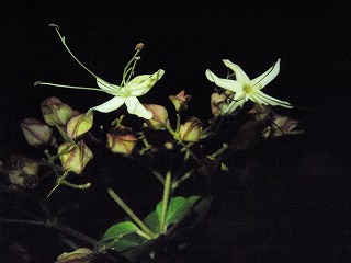 今年は例年と違った天気が続いています。心配していたがやや薄雲りながら、綺麗な月(十五夜二日前)がみられました。日没(6:15)から灯火観察の準備を始め、参加者を待ちました。例年、4、5家族参加がありにぎやかにナイトハイクをしていました。今年は待てど参加者は現われませんでした。集合時間ぎりぎりに1家族2名が見えました。今日は何か大きな行事があるのか聞いたところ、テレビでドラえもん特集があるとのこと。参加した家族は迷っていたがこちらに来たとのこと。