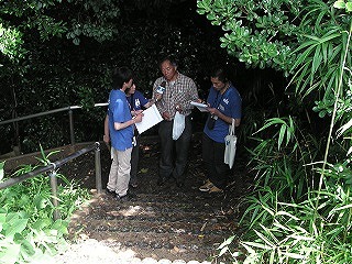 【左】管理事務所長さんのあいさつです 【右】原さんがオオケマイマイの説明をしています
