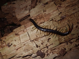◎昆虫 ダンゴムシ、トビズムカデ、ハサミムシ、キマワリ幼虫、モリチャバネゴキブリ、ミミズ、ジグモの仲間……(以上は朽ち木の中から)