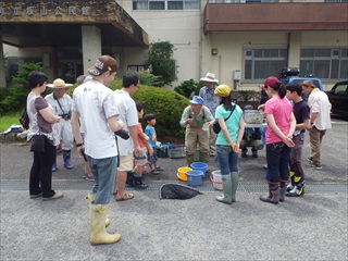 薄曇りで、川に入るのには最適な気候でした。集合場所の公民館で資源ごみの回収日と重なってしまい迷惑をかけてしまいました。指導員も一般の参加者もたくさん来てくれたのに種類としては過去最少だったように思われます。採集場所の様子はあまり変化を感じないので、上流の荒れ方がひどいのでしょう。種類が少ないせいか早めに川から上がり分かち合いで金内さんの説明を聞きました。初参加の子どもが楽しんでくれたのが救いです。 (記:平松裕)