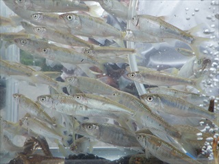 【左】オイカワの群泳   【中】群泳を近くから見る(しっかり観察できる) 【右】一つずつ丁寧に説明