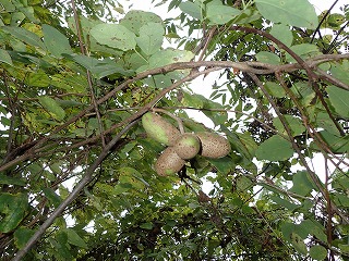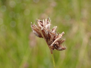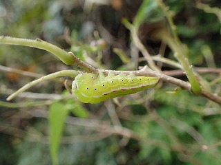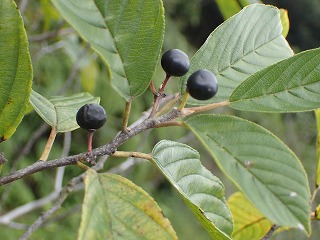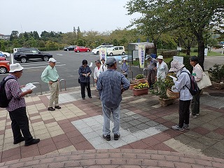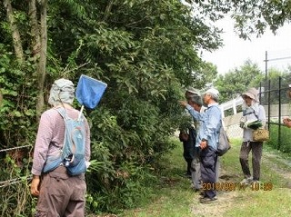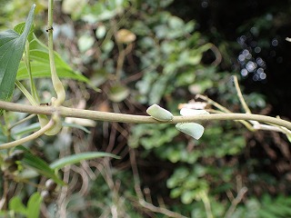 雨を心配していたが曇り空で少し蒸し暑いが観察にはまず〜。参加者はいつもの顔触れが多い。挨拶後出発してまもなくキカラスウリに出会が、カラスウリの2倍ちかくありそうでいかにも重そうに数個ぶら下がっているのを見る。また水田の側にはアメリカミズキンバイ(ヒレタゴボウ)の花が咲き、降幡さんが解体した実を見て種の数が多いのに驚き急増してもおかしくないことを実感しました。シラタマホシクサは8月の雨量不足から一部の個所で地面の乾燥から元気がない場所があるが、それ以外では花の開花・色も一番良い状態で観察が出来たのではないかと思われる。また伊藤さんから顕微鏡カメラで撮影されていた写真を見せてもらい自分の目で見る状態とは違い花の内部の構造が良くわかりました。樹木ではサワフタギの実が瑠璃色に熟し色の美しさに目をひきつけられる。途中では木の実を試食するがまだ少し早く感じたが、熟してしわのついたムクノの実を選んで皆で食べ干し柿に似た味を分かち合いました。準備万端(捕獲用ケース)の藤井さんはアオ虫類をゲットして大満足の様子でした。(記・宮内)
