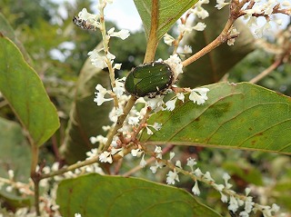 【左】 コアオハナムグリ            【中】 ジュジナガカメムシ            【右】 ジョロウグモ