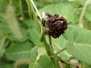 カマキリ・シオカラトンボ・ショウジョトンボ・キイトトンボ・ナガコガネグモ・ジョロウグモ・マツモムシ・ギンヤンマ・