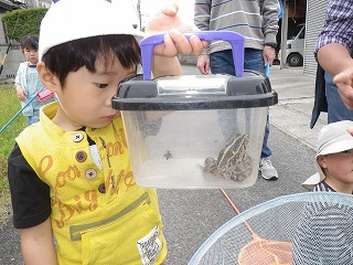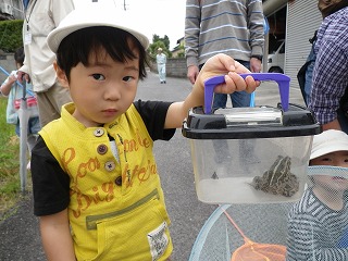 【左】大きなトノサマガエル 【右】閉会前の集合写真