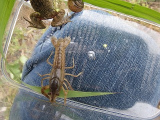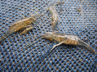 【左】スジエビ 【中】アメリカザリガニ 【右】