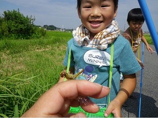 【左】頑張ってトンボ取ったぞー    【右】 サー 川に入るぞー!