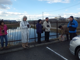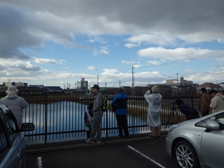 12月の初旬ってこんなに寒いの…と思うぐらいこの2,3日は寒い。早く来た人から隣接する康衛池のカモを観察している。時間になったので、一旦区切り、始めの挨拶をする。挨拶の後も、当然、同じ場での観察が続く。泳いでいるカモの数は昨年の観察会の時よりも少ない。年々減っている感じだ。
