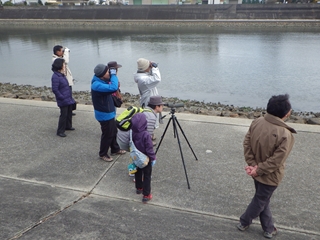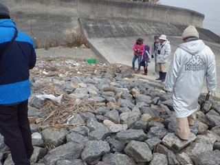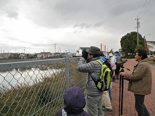 折り返し地点は潮と風の関係で“ゴミだまり”になるところ。そこでひとしきり遊んで帰路につく。住宅地の道路でメジロとシジュウカラを見た。最初の池に戻ったとき比較的近くを水に潜らないで一直線に相当長い距離を泳ぐカイツブリを観察できた。 (記:榊原正)