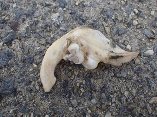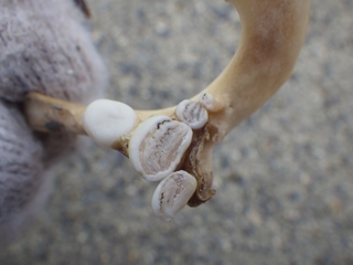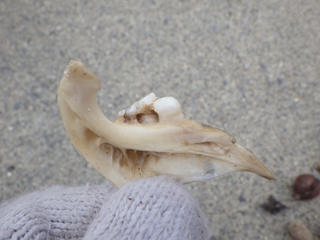 【上の3枚】同一の骨…あごの一部。指導員の一人はヌートリアではないだろうか…と言っていた。他の指導員が持ち帰った