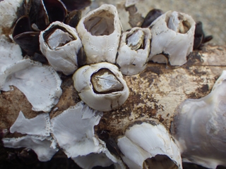 【左】タテジマorアメリカフジツボの幼形か? 【中】アメリカフジツボ 【右】シロスジフジツボ