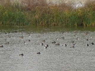 ・池で…ホシハジロ、キンクロハジロ、オナガガモ、ハシビロガモ、コガモ、カイツブリ