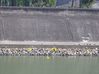 やはり、今年も居た。向こう岸に…。数えると、18羽確認。鳥に詳しい会員の話では「いっぺんに18羽確認は珍しい。おそらくこの近くで繁殖していると思われる。そんなにアチコチで見られる鳥ではない…」とのこと。しかも、セイタカシギはホント綺麗な(端正な)鳥で、参加指導員一同、川を離れる前に、もう一度、時間を掛けてシッカリと見たものでした。