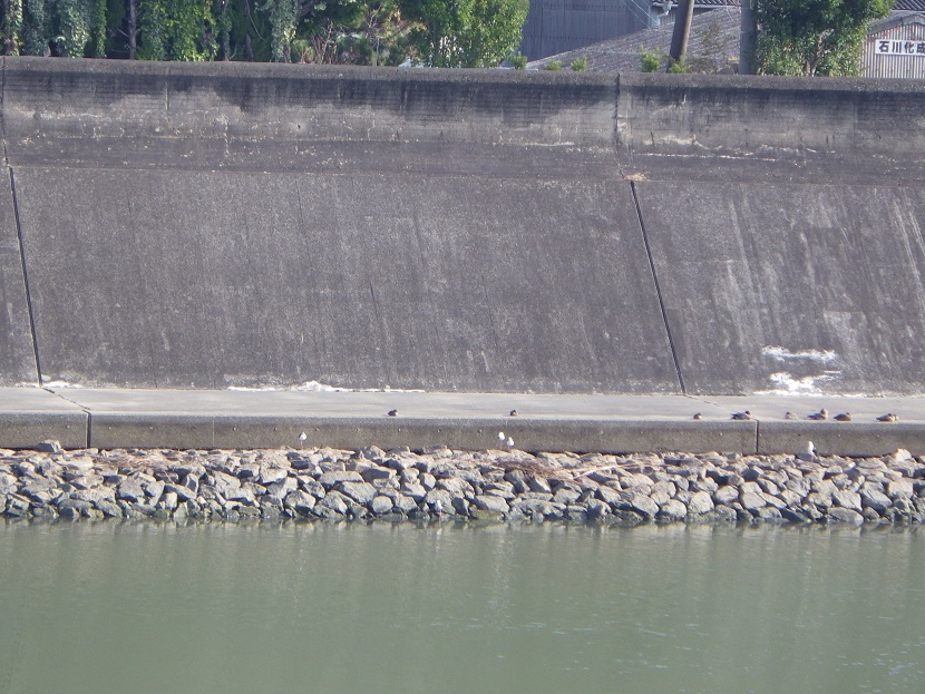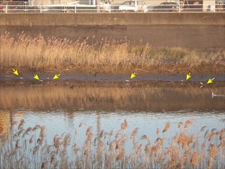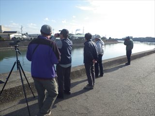 阿久比川は、一見、鳥の群れは極めて少なかった。また、大潮にもかかわらず水面は下がらず川底は見えない。しかし、ここでの期待は、