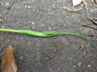 【左】キュウリグサの花をルーペで観る  【右】カラスビシャクがあった。当地では比較的珍しい