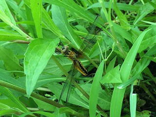 駐車場の側の土手には、今年もオタマジャクシからカエルになったばかりのヌマガエルの子どもがぴょんぴょん跳ねており、私たちを出迎えてくれました。東浦新池の東側道路は、綺麗に草刈がされていたため、昨年のようなクズに集まるゾウムシなどは捕まえることができませんでした。また、東浦新池の周辺にはコシアキトンボやシオカラトンボ、ハグロトンボを始めたくさんのトンボを観察することができました。カブトムシはまだ時期が早かったようで捕まえることができませんでしたが、ノコギリクワガタを3匹捕まえることができました