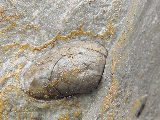 【左】植物の化石と生痕化石 【中】21 【右】タマガイの仲間