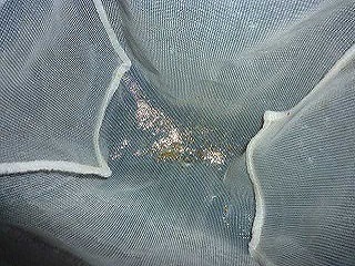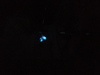 【左】網の底に見えるのがウミホタル 【中】ウミホタルが青白く発光しています 【右】ウミホタルの発光