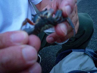 【左】夏休みの自由研究のため持ち帰りました 【中】アカテガニ 【右】産卵後のクサフグ(痩せている)