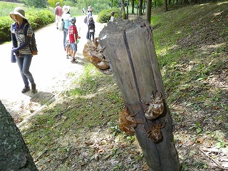 【左】アキニレ 【中】クヌギ 雑木林 【右】アブラゼミの抜け殻がいっぱい