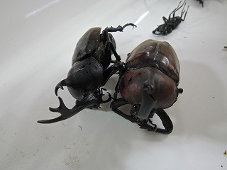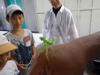 【左】今日のまとめ 【中】コクワガタ 欲しい人 ジャンケン 【右】ハラビロカマキリ