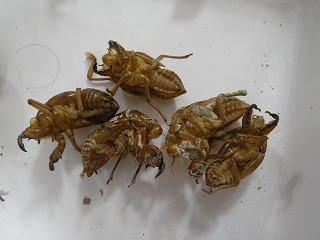 【左】カラスウリ 【中】カブトムシ(死骸) 【右】セミの抜け殻
