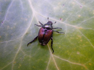 【左】クビキリギス 【中】ツチイナゴ幼虫 【右】マメコガネ