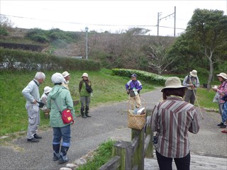 4月の第一日曜日、薄曇りの中今年度初の観察会へ一般3人と指導員11名でいざ出発。別曽池南側のトンネル(上は名鉄)を抜けて里山へ。