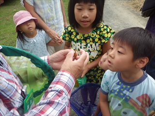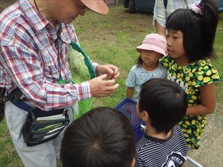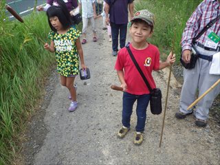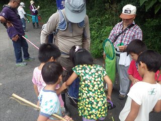跳ね馬、笹舟、クズの葉のお面にパッカン。自然遊びの面白さを大人も子供も満喫した様子。「色々なものに会えて楽しかった」との感想であった。