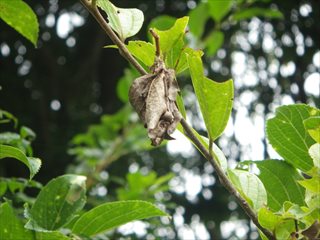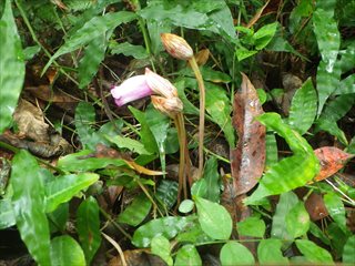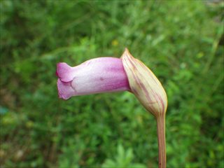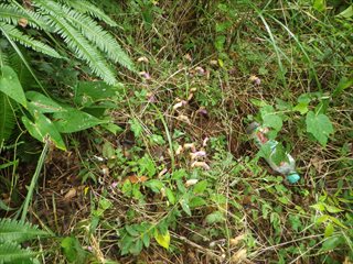 アケビの実の下を通りナンバンギセルの所へ。あるある、今年もちゃんと生きていた。