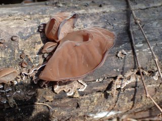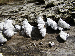【左】スエヒロタケ   【中】アラゲキクラゲ(食)  【右】ホウロクタケ